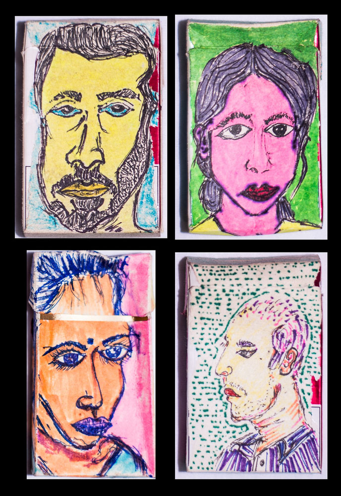 অলস দুপুরে, অনর্থক আড্ডার ফাঁকে একটা কিছুতে আঁকিবুঁকি করতে ইচ্ছে করে। ল্যান্ডফোনের দিনগুলিতে অনেকক্ষণ ধরে কথা বলবার সময়, টেলিফোন ডাইরেক্টরিতে কলম দিয়ে আম্মু যেমন নক্সা কাটতো; অনেকটা তেমন। আমার হাতের কাছে সিগারেট প্যাকেট ছাড়া আর কিছুই থাকতো না, আঁকবার, ছিড়বার জন্য। সেগুলির চামড়া ছিলে, রঙ্গিন কলম দিয়ে যা ইচ্ছা আঁকতাম। যার সাথে আড্ডা দিতে দিতে আঁকা, তাঁর ভাল লাগলে নিয়ে যেত। আর না হয় আমার ঘরের কোনায়, ড্রয়ারে গড়াতো।